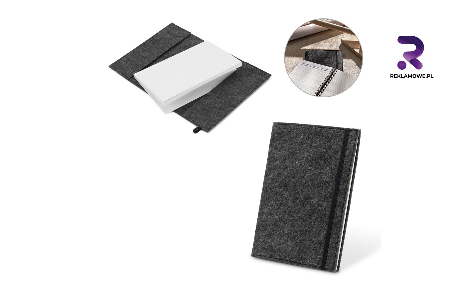 - Notatniki z gumką zamykającą – elastyczna taśma chroni notatki, luźne kartki czy wizytówki przed wypadnięciem, dzięki czemu gadżet jest niezastąpiony w podróży. Subtelny nadruk na matowej okładce podkreśla dbałość firmy o detale oraz praktyczne podejście do organizacji pracy.