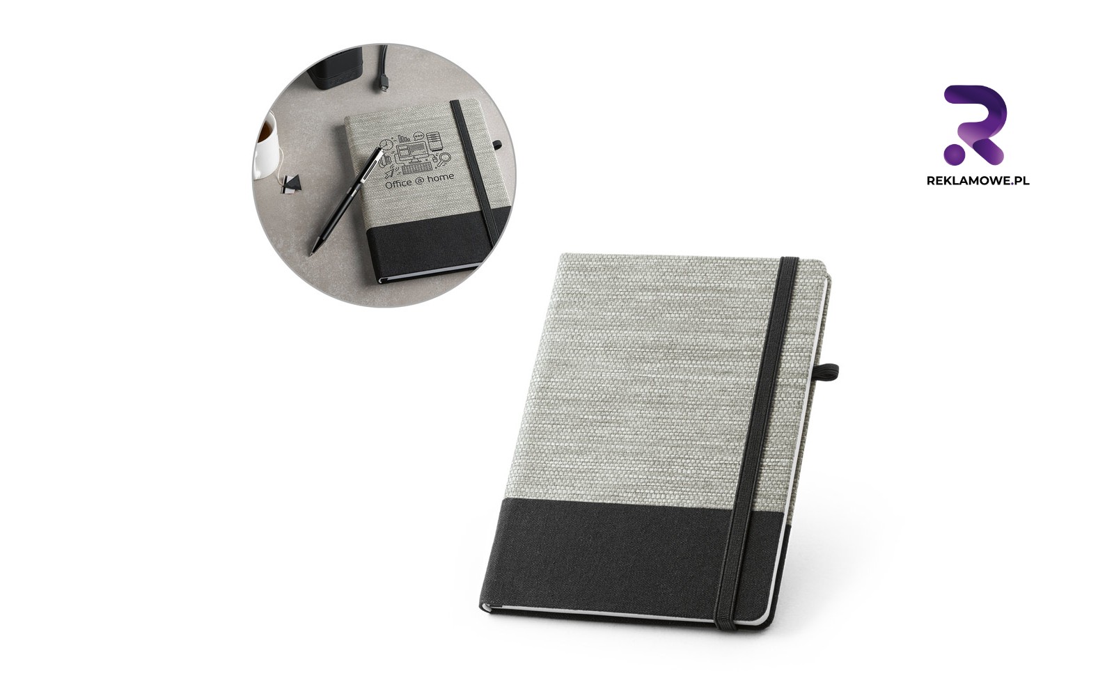- Notatniki A5 – klasyczny format łączący wygodę pisania i łatwość przenoszenia. Wkład z kremowego papieru i dyskretny nadruk logo sprawiają, że stają się codziennym towarzyszem pracowników i klientów, dzięki czemu marka jest widoczna podczas każdej narady, wykładu czy podróży.