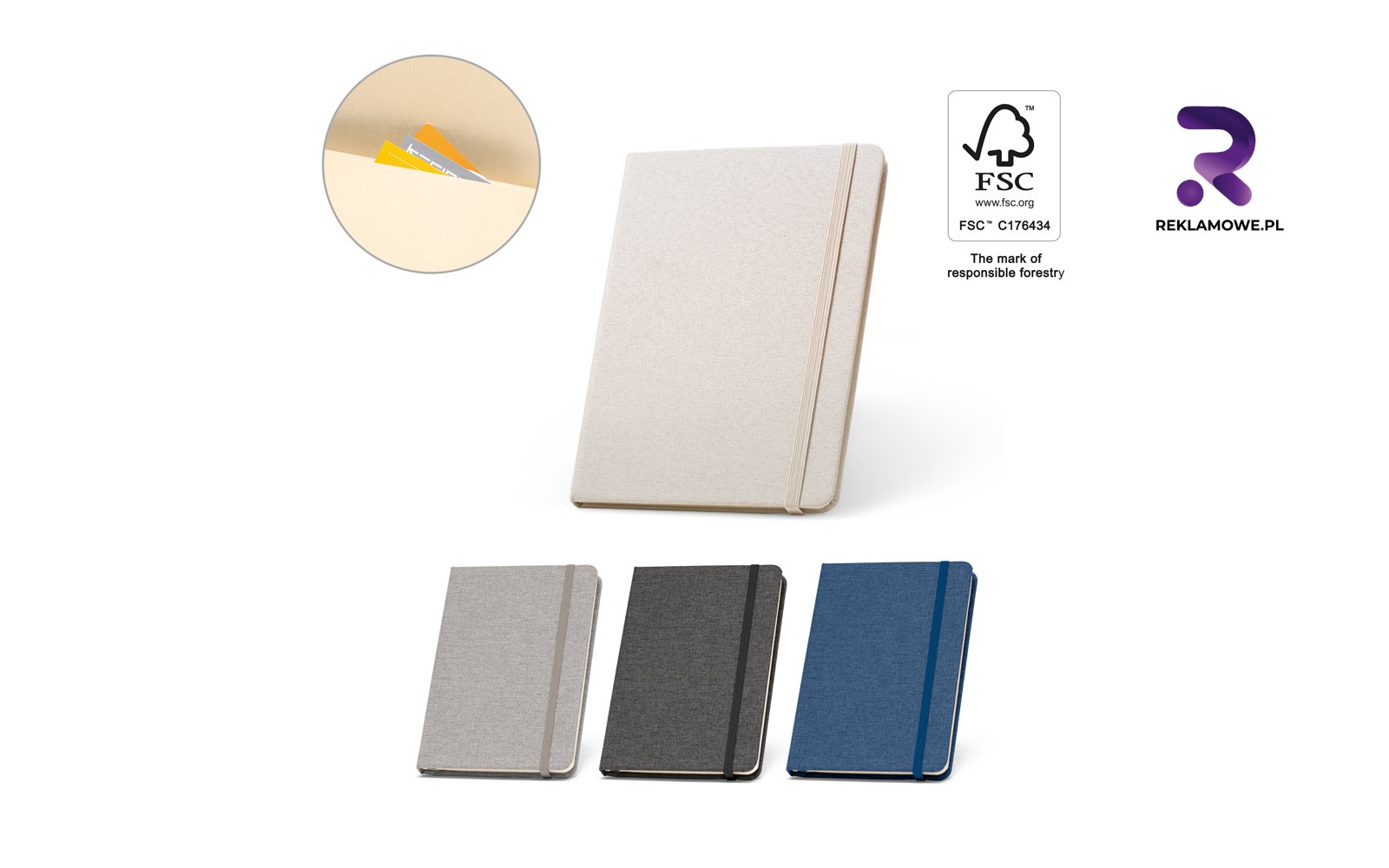 - Notatniki eko z papieru z recyklingu – przyjazne środowisku, sygnalizują odpowiedzialność marki i pozwalają klientom realnie wspierać idee zero-waste każdego dnia w biurze i w domu.
